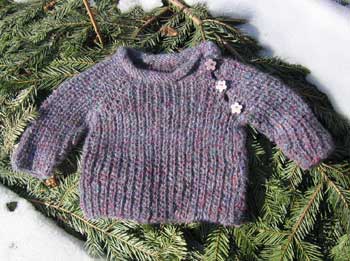 Marianne Olafsson har lavet den charmerende "brynjesweater". Om den er til piger eller drenge, ja det kommer nok lidt an på valget af knapper... Med små flyvemaskiner eller andre "drengede" knapper, er det vist også en sweater drenge kan lokkes i på de kølige forårsdage. Opskriften kommer i størrelse 2 og 4 år.