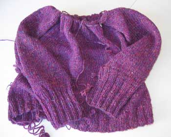 I øjeblikket er jeg så i gang med en forårstrøje i silke-/uldgarnet, og da jeg har våget mig afsted helt uden opskrift, er jeg spændt på det færdige resultat ;-).