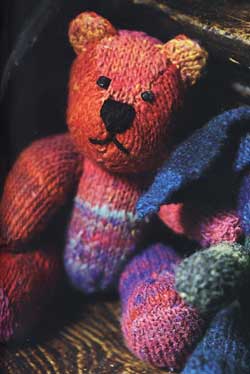 Torsdag aften kastede jeg mig over et nøgle garn i bamsefarve (Noro Kureyons farve 55), for at begynde på Norobamsen I kan se på billedet. Mærkeligt at strikke med så forholdsvis tykt garn på pinde 3 mm (garnet er anbefalet til pind 4,5-5 mm). Det ser i hvert fald ikke ud til, at man kommer til at kunne se fyldet igennem det strikkede. Fredag begyndte jeg på endnu en Booga Bag i toget på vej til Odense. Og da jeg nåede Valby station på vejen hjem, havde jeg strikket det første nøgle garn op... Retstrik på pinde 6,5 er ikke det der tager længst tid. Så inden jeg fik set mig om, har jeg fået søsat to små nye projekter, men jeg må jo hyggestrikke, mens jeg venter på opskriften på Lara. Også der blevet spurgt til opskriften på slangen i sidste indlæg. Den er fra Birte Aartuns bog "Strik og Krymp". Skriv en lille kommentar21. september 2004 - Babysko og mangefarvet slange Så har jeg fået taget billeder af de babysko og den slange jeg blev færdig med i søndags. Slangen har egentlig været færdig længe, men fik øjne, og lukket munden ;-) i søndags. Babyskoen er vist det hurtigste strikkepojekt jeg nogensinde har lavet (tog vist alt i alt en times tid). De er strikket i en rest af Noros Kureyon, og er derfor blevet forskellige. Men med ens bånd, synes jeg det ser ganske fint ud. De er bittesmå, men skulle også passe til en nyfødt baby. Om de gør det vil vise sig, men søde er de i hvert fald.