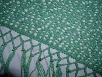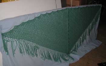 Jeg fik endnu en gang lokket kæresten til at være fotograf, så I kan se mig iklædt Charlottes websjal i strikkegalleriet (rul lidt ned på siden). Men jeg må desværre skuffe nogle af jer. Der er ikke perle på sjalet, det er nålene sjalet var blokket med, der kan ses på billedet i sidste indlæg. Men ideen er god, jeg vil bestemt overveje det, hvis jeg finder på at strikke endnu et Charlottes websjal. Skriv en lille kommentar18. september 2004 - Charlottes websjal