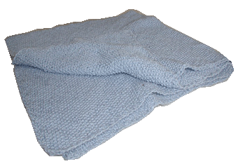 Babytæppe til det lille væsen der ligger inde i Annemettes mave og venter på, at det er stort nok til at klare sig ude i den store verden. Tæppet er strikket i bomuld i perlestrik og måler 90x90 cm.